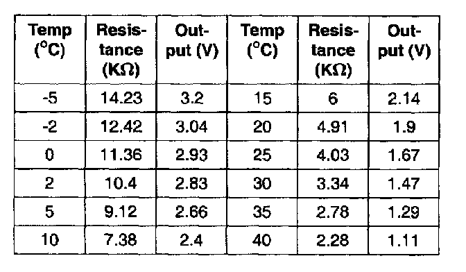 Pin sensor temperature-resistance-output voltage characteristics