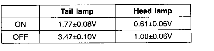 Lights must be turned off 3±1 sec. after the input light to the light sensor has been removed. Head lamps must be turned off 300 msec before the tail lamps are switched off. When the headlight switch is in the auto position and light intensity fulfilling the table below is detected, the tail lamp and the head lamps will be turned on. These figures are based upon the use of untinted solar glass.