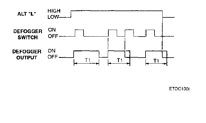 When the engine is running (Alternator "L" is high) a contact of the rear defog switch (momentary action) will switch the rear defog relay output on for 20 minutes duration.