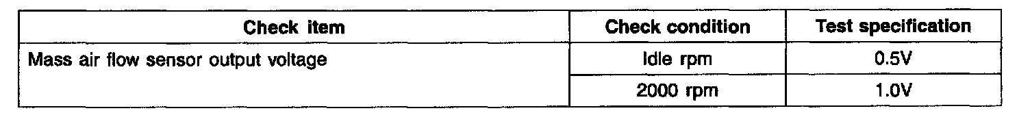 2. If the MAF sensor output voltage is other than 0 when the ignition switch is turned on (do not start the engine). Check for a faulty MAF sensor or ECM.