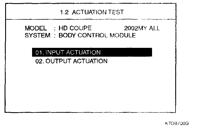 2. Select "02.0UTPUT ACTUATION" and then press [ENTER].