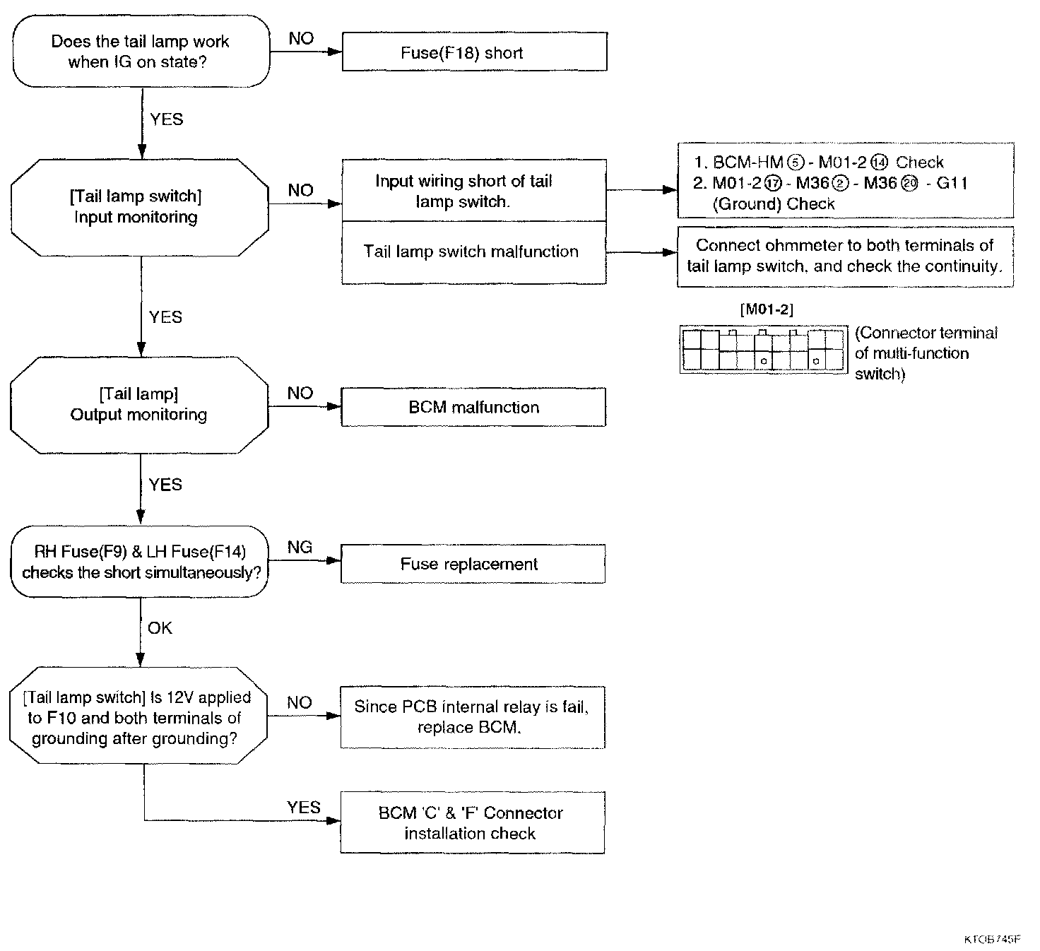 Check BCM input condition against tail lamp switch and tail lamp.