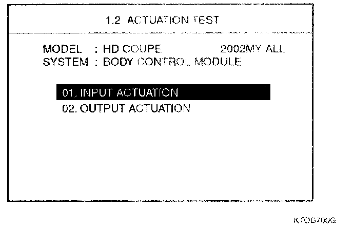 2. Select "02.0UTPUT ACTUATION" and press [ENTER].