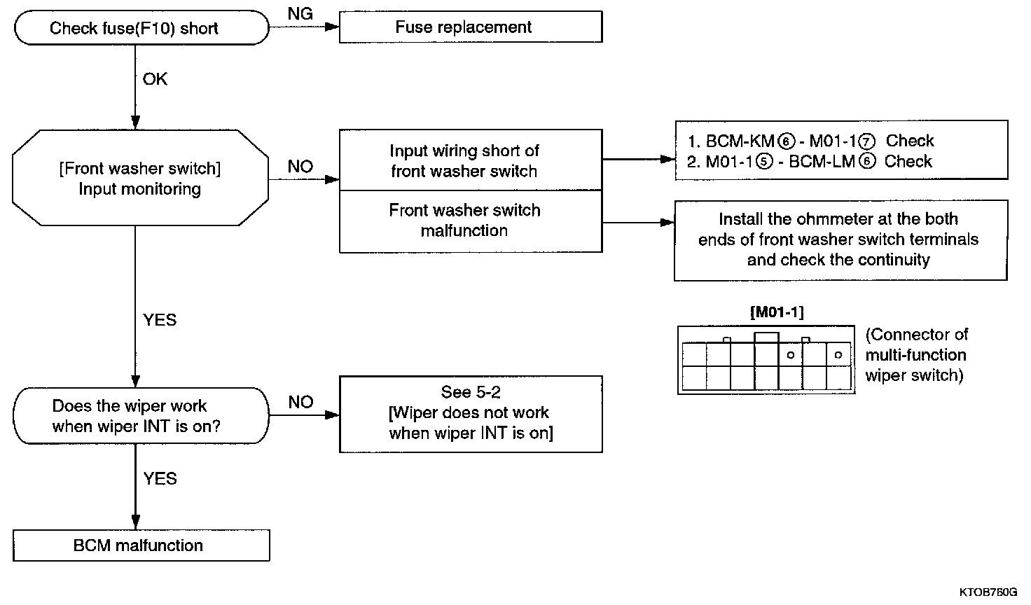 Since wire drives directly wiper low and high operation, check the 3 items by referring to front wiper & washer.