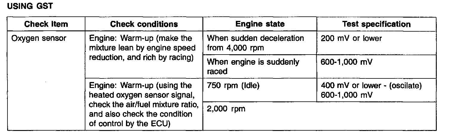 2. If the HO2S check results were normal, but the sensor output voltage is out of specification, check for the following items (related to air fuel ratio control system):