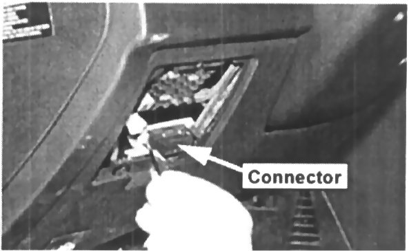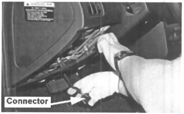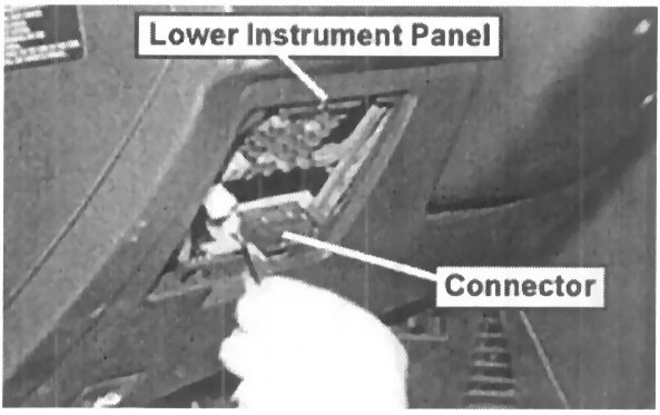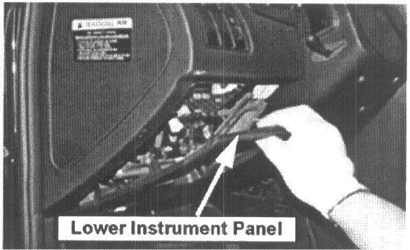 3. Remove the lower instrument panel as shown to more easily access the OBD connector for removal.