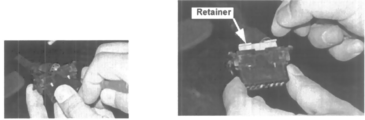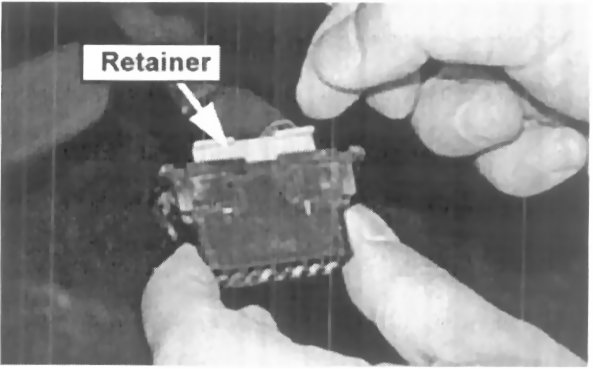 5. Remove the retainer from the back of the OBD connector by depressing the retainer tabs.
