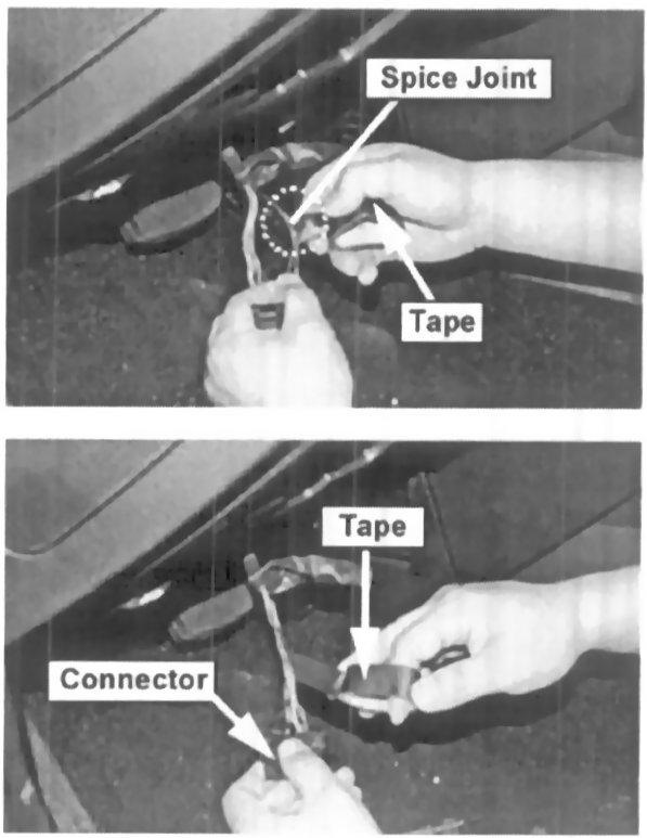 14. Reinstall the protective vinyl tube on the OBD connector wires and then cover with tape.