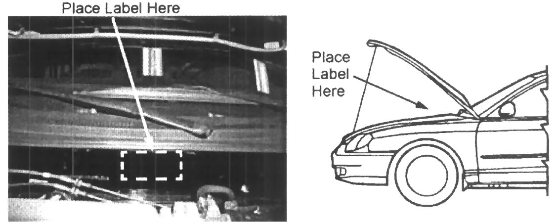 6. Next remove the backing from the label, and press the entire label on the engine compartment wall in the position shown in step 2.