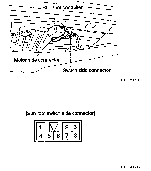 2. Disconnect the sun root switch side connector from the sun roof controller.