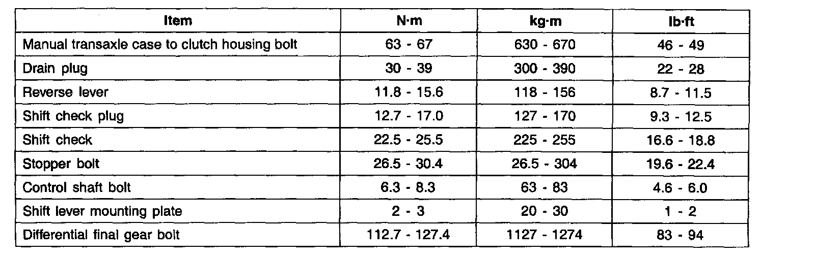 TIGHTENING TORQUE (6-SPEED M/T)