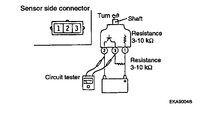 b. Turn the shaft of the vehicle speed sensor and check that there is voltage between terminals 2-3 (1 turn=4 pulses).