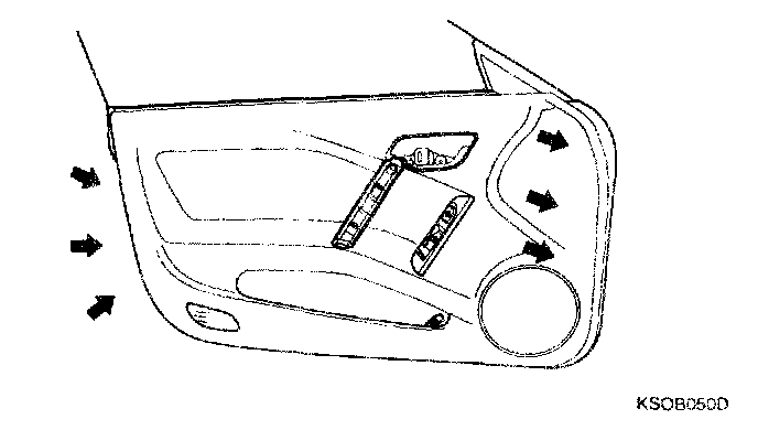 NOTE: Install the door outside belt to the inside of groove of the door panel.