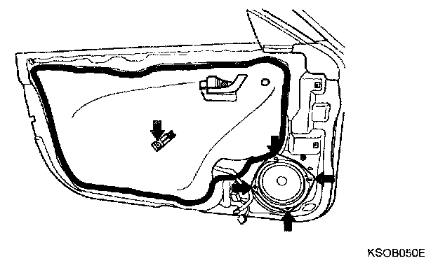 5. Remove the door grip handle mounting bracket, speaker and door trim seal.