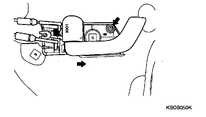 12. Disconnect the cable, after loosening the inner handle mounting screw, push the inner handle toward the direction shown in the illustration and remove it.