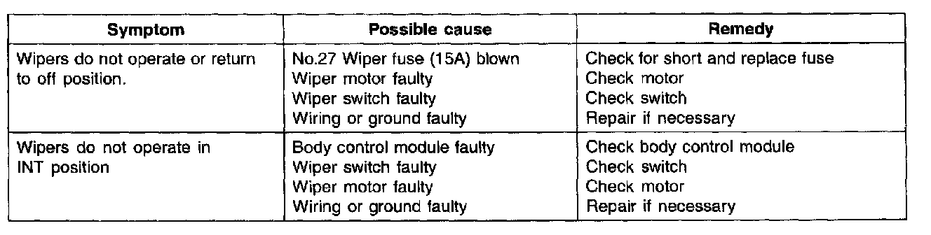 Troubleshooting - Windshield Wiper: