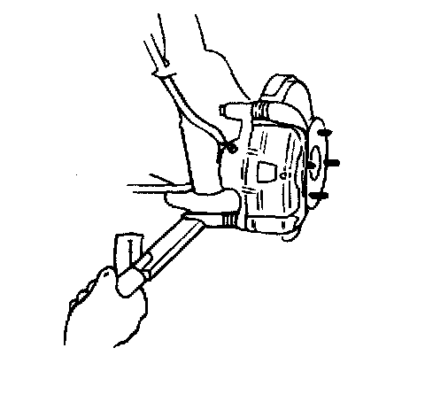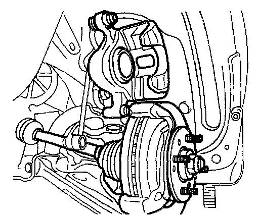 1. Remove the lower bolt and lift the caliper assembly up and secure it with a wire or some other retaining method.