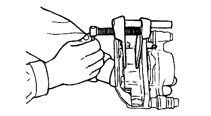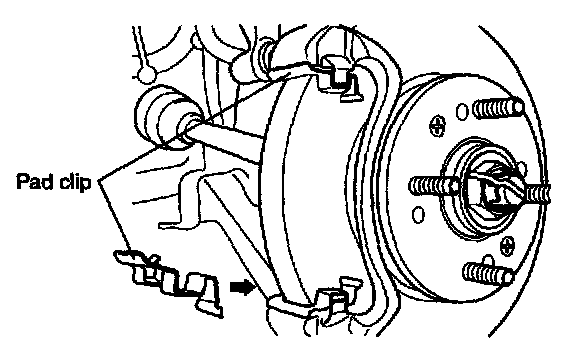 CAUTION: Do not depress the brake pedal while disassembling the pads.