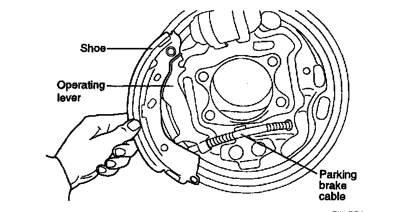 9. Disconnect the parking brake cable from the brake shoe operating lever.