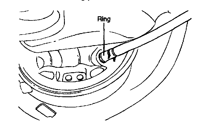 10. Remove the parking brake cable retaining ring in the rear of the backing plate.