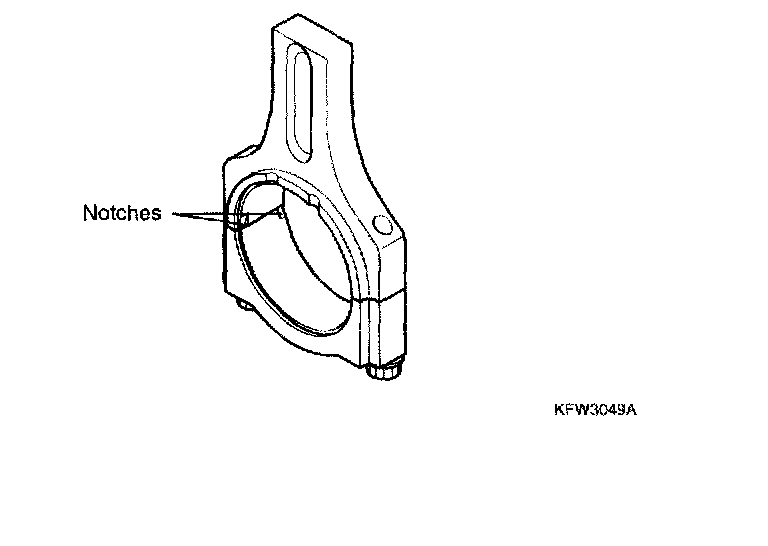12. When a new connecting rod is installed, make sure that the notches for holding the bearing in place are on the same side.