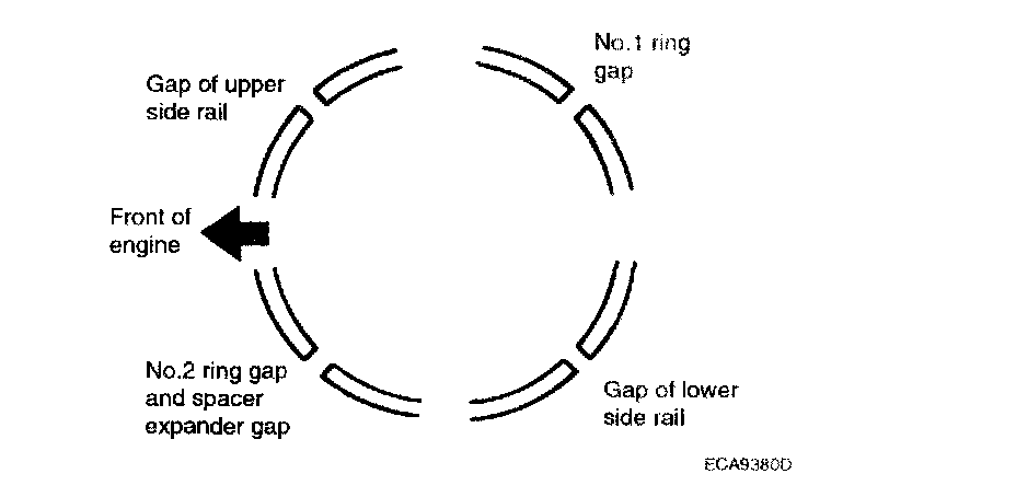 7. Position each piston ring end gap as far away from its neighboring gaps as possible. Make sure that the gaps are not positioned in the thrust and pin directions.