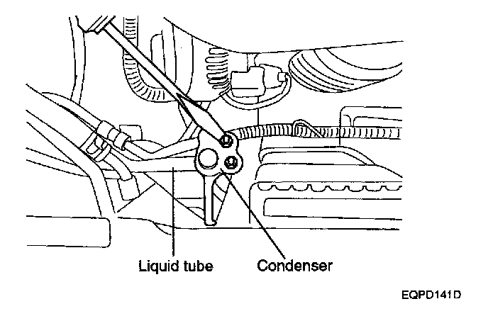 5. Remove the condenser upward by pressing the radiator backward the vehicle.