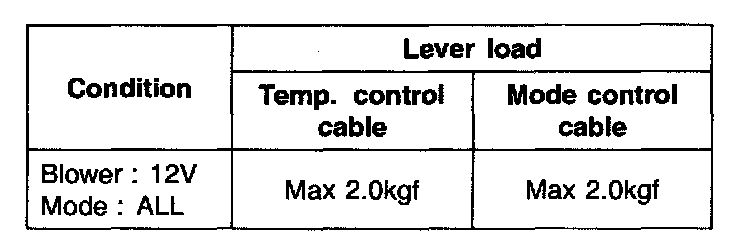 Refer to "COMPONENTS" for disassembly and reassembly. When installing and reassembling the temp. control and mode control cable, refer to the chart.