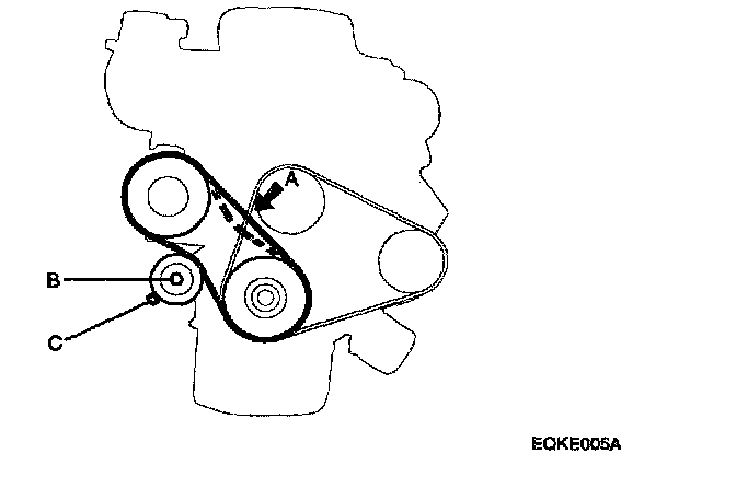 2. Turn the adjusting bolt(C) to obtain the proper belt tension, then retighten the mounting bolt.