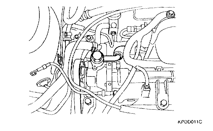 9. Lower the vehicle and disconnect the pressure hose connector from the oil pump. (When removing the pressure hose)