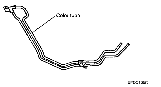 3. Connect the color tube to the power steering oil reservoir tank side hose, return tube and hose side and fix it with clips. (When installing the color tube)