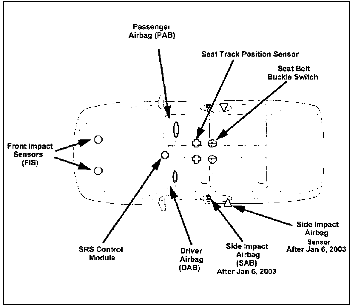 ^ Early production 2003 Model Year Accents (Pre January 06, 2003 production) do not have side impact airbags and have a different SRS wiring harness and control module. Verify which system you are working on before ordering any parts.