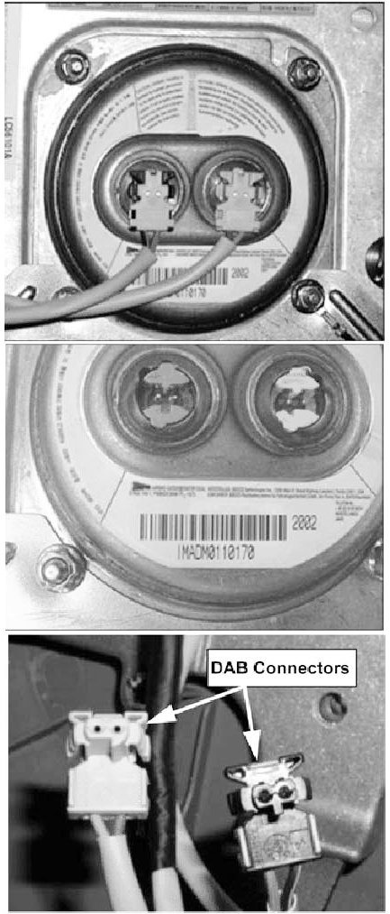The dual-stage DAB has two (2) separate connectors for the two circuits. The two connectors are of a different style and are not interchangeable.