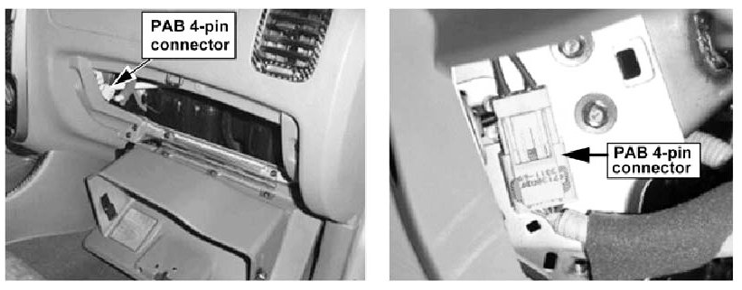 Although the PAB is a dual-stage airbag (like the DAB), it has one connector (4 pins) for the two circuits.