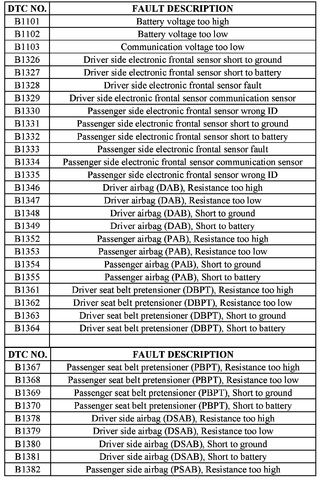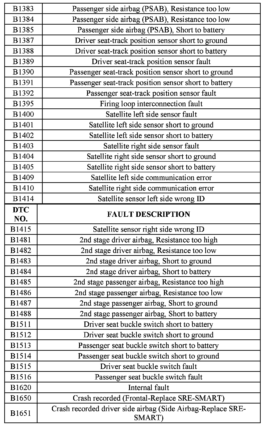 DUAL-STAGE SRS SYSTEM DIAGNOSTIC TROUBLE CODE INDEX: