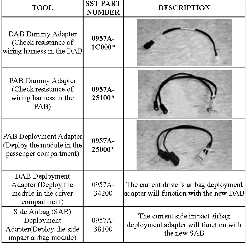 SPECIAL SERVICE TOOL (SST) FOR DUAL-STAGE AIRBAG: