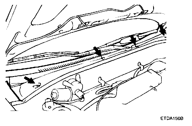 4. Remove the wiper link mounting bolts and take out the wiper link assembly from the cowl top panel.