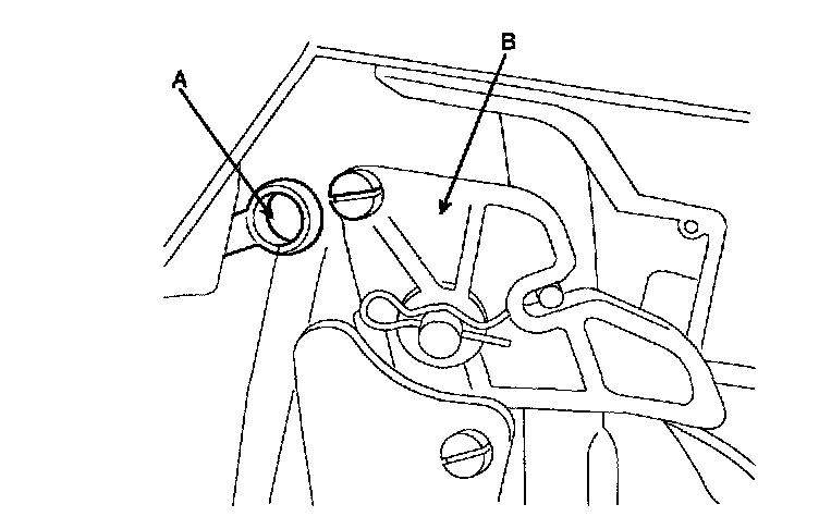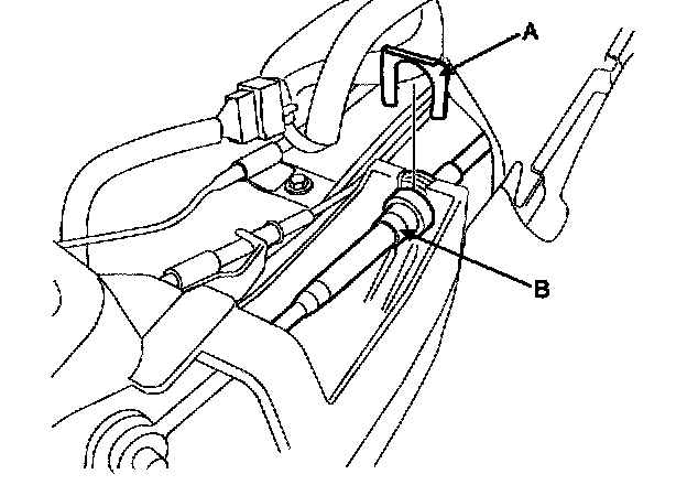 4. Remove the clip(A) of the control cable(B) by pressing it with the driver.
