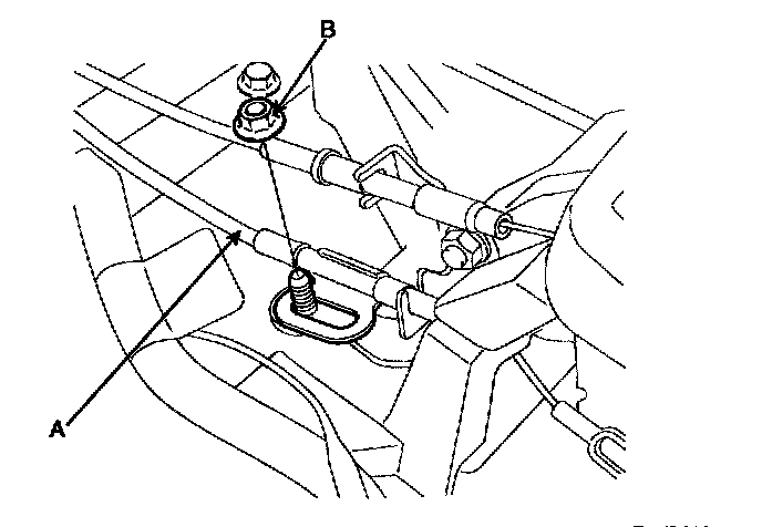 5. Separate the shift lock cable(A) from the P-lock cam(B).
