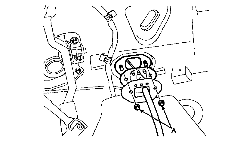 9. Remove the mounting bolts(A) of the cable of the lower dashboard side to remove the cable.