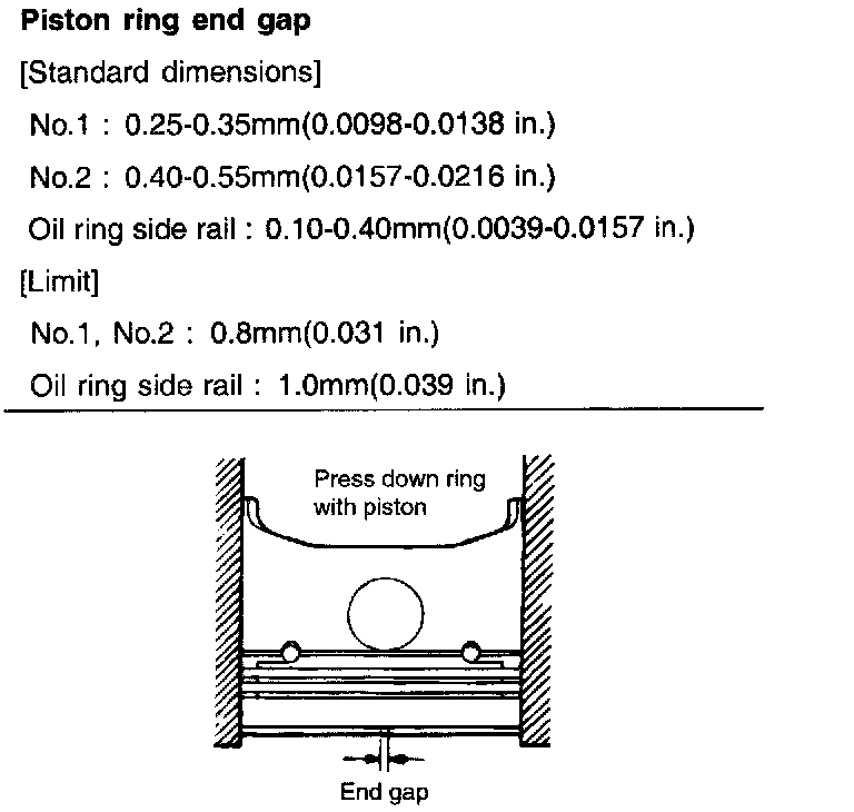 Oil ring: 0.06 - 0.15 mm (0.0024 - 0.0059 inch)