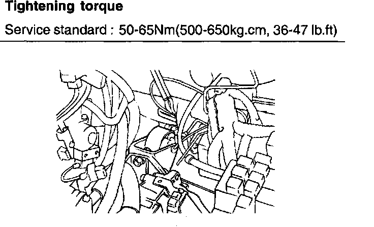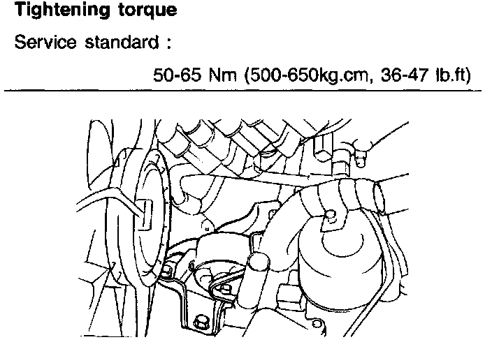Service standard: 50 - 65 Nm (500 - 650 kg.cm, 36 - 47 ft. lbs.)