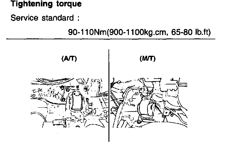 Service standard: 90 - 110 Nm (900 - 1100 kg.cm, 65 - 80 ft. lbs.)