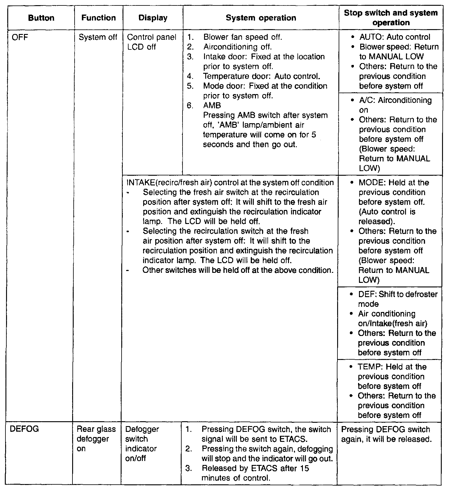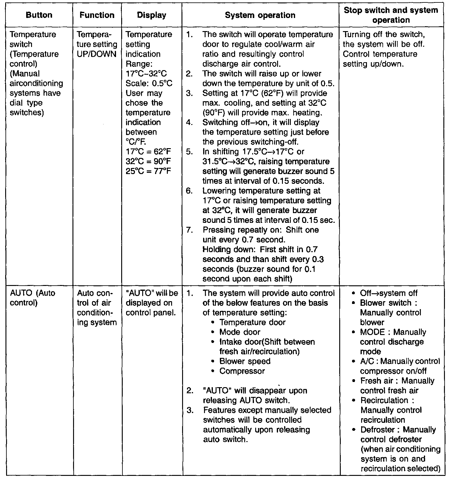 BLOWER AND A/C CONTROLS (AUTOMATIC)DESCRIPTION