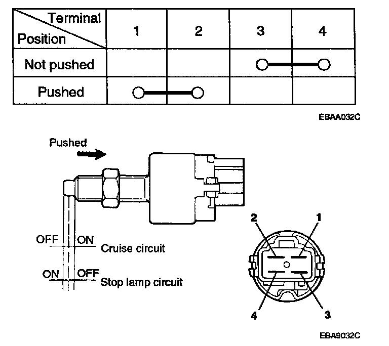 After operating the stop lamp switch, check for continuity between the terminals.