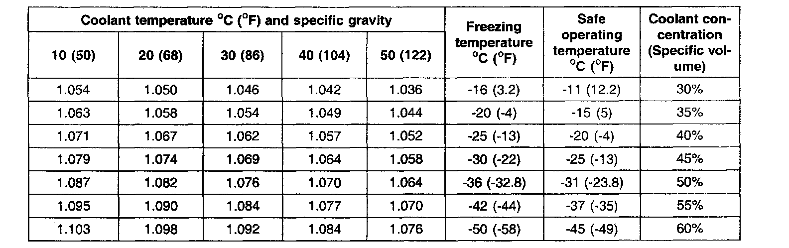 RELATION BETWEEN COOLANT CONCENTRATION AND SPECIFIC GRAVITY