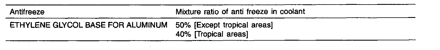 2. Measure the coolant temperature and calculate the concentration from the relation between the specific gravity and temperature, using the table for reference.