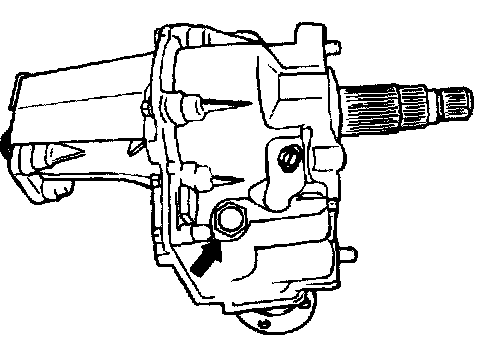 1. With the vehicle parked on a level surface, remove the drain plug and drain the transfer case oil.