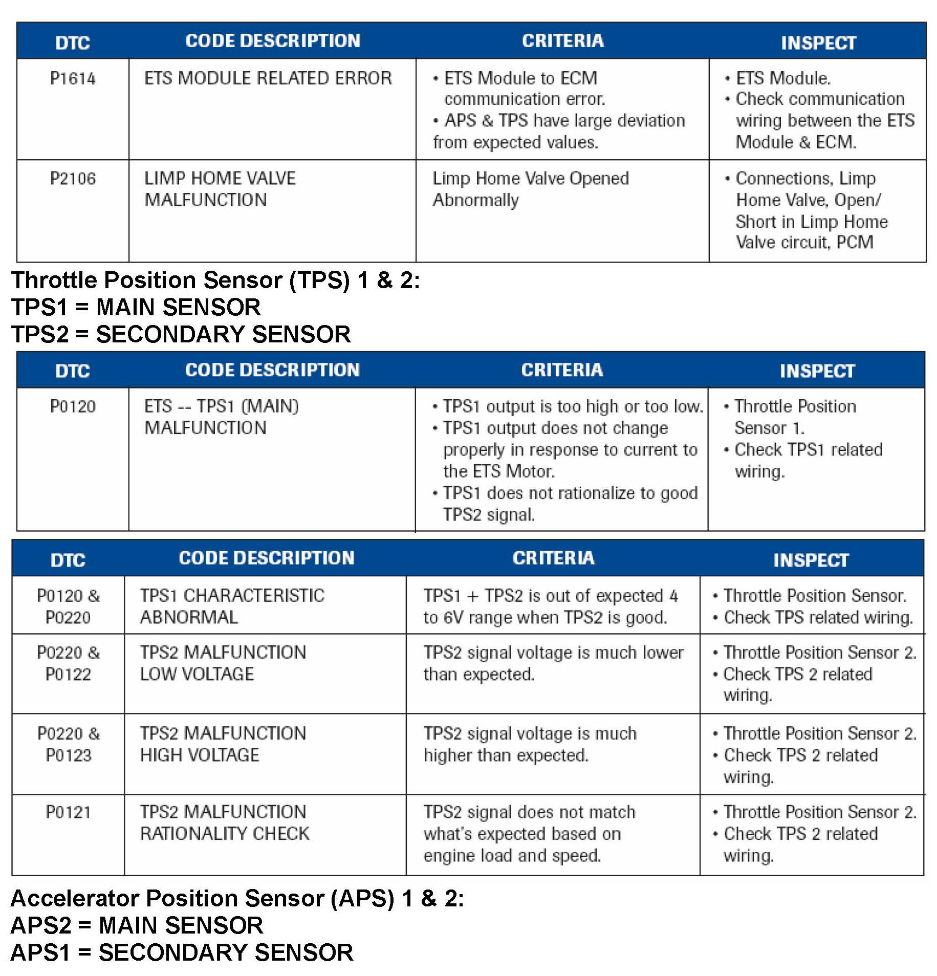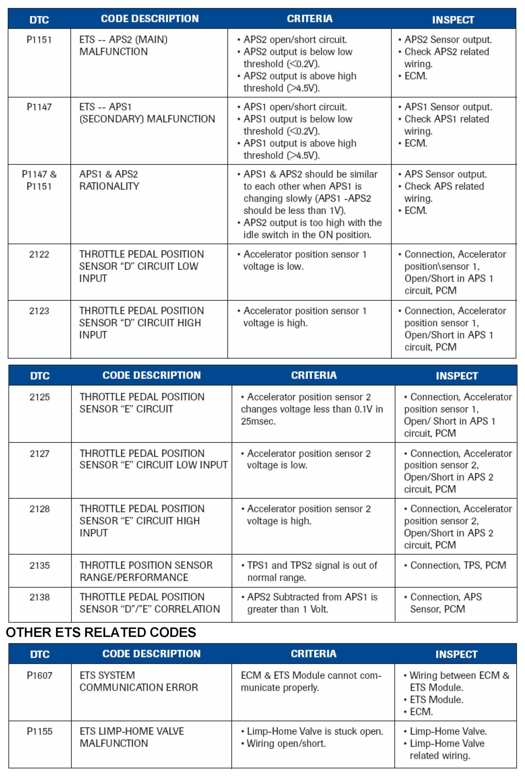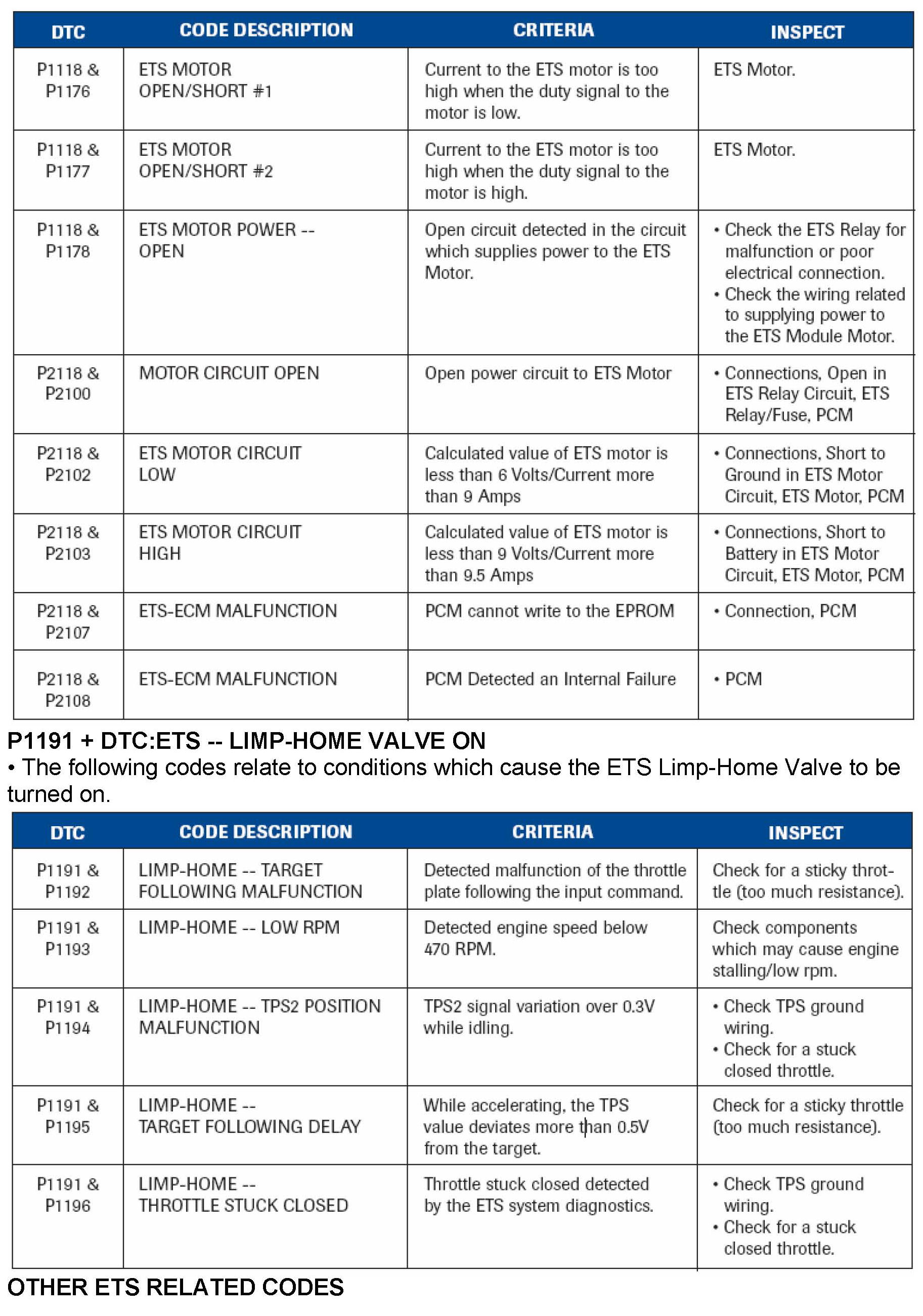 ^ In most cases an ETS-related DTC will set in pairs of codes. The first code denotes the related system or component. The second code is for the specific fault detected.