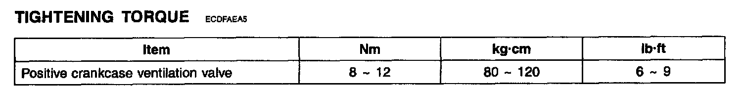 Positive Crankcase Ventilation Valve
